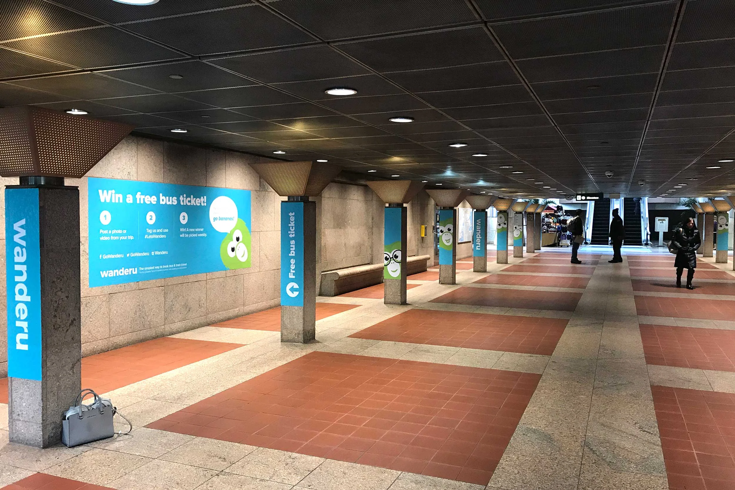 Wanderu had the unique opportunity to be the first ever to do a full takeover of Boston's South Station bus terminal. We had access to multiple areas in the station, each presenting unique design challenges and opportunities. Taking a user centered design approach, we first did a walkthrough to document how people interact with each space. Where do they wait around? Where do they rush through? Where do we have most of their attention? Identifying these social behaviors drove content strategy and design. The goal of this campaign was to increase brand awareness in the Boston market.